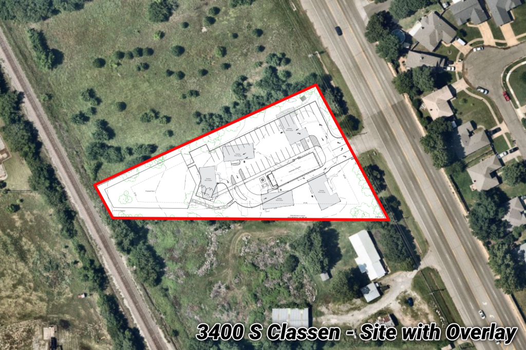 North of the Cedar Lane intersection, Battison Properties LLC proposes a drive-thru restaurant to occupy the site at 3400 Classen Boulevard. The site spans 1.48 acres and currently contains five residential homes.
