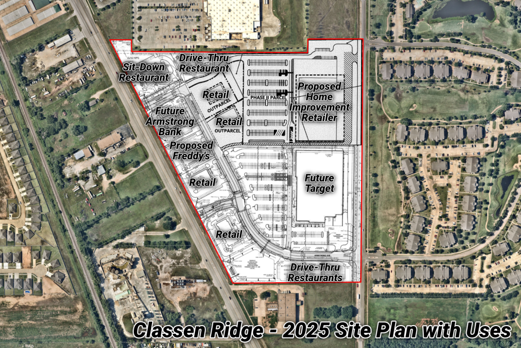 Republic Bank, now Armstrong Bank, first acquired the land in 1991. County records show that a newly formed entity, Classen Ridge LLC, paid Armstrong $3.8 million for Phase 1 of the development. Armstrong provided the financing for the development. Classen Ridge subsequently deeded Target its parcel for their future store for $2.2 million.