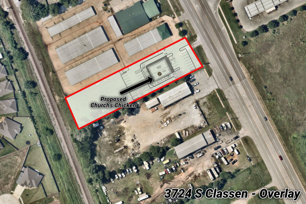 The building will span 3,000 square feet and include a drive-thru. Church’s Chicken will occupy the south unit in the building. The north unit did not have a user proposed at the time of application, however, it is planned for restaurant use.